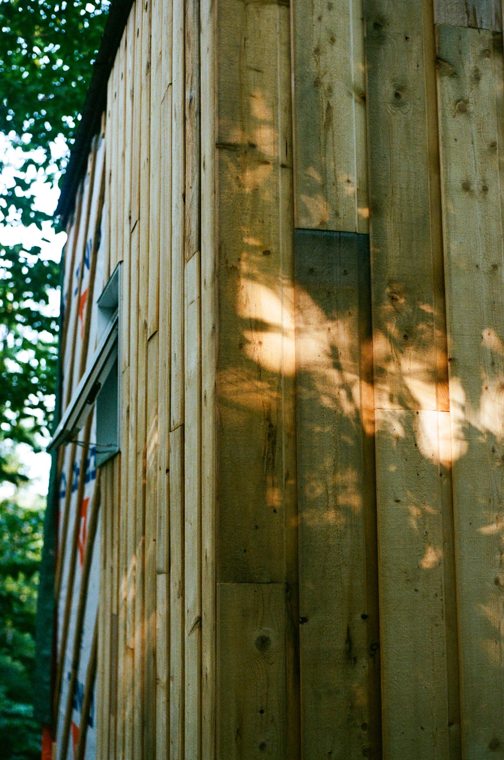 Since studying architecture, I've nurtured the dream of building my own home. To create a space where I could recharge my batteries, I decided to draw up a list of needs and find myself a plot of land. For my needs, I wanted a space to cook, work and welcome friends. In addition, I wanted to use the sun's natural power to heat the space in winter by creating a passive solar home. I was fortunate in that my parents own a large plot of land where our family sugar shack is located, and it turned out that I could choose a place to build this haven of peace. The project got underway: we cut our own wood, made our own planks, collected boards and carried the materials up the mountain. And yes, I chose the highest point on the lot to build my cabin. Lots of back and forth to do.