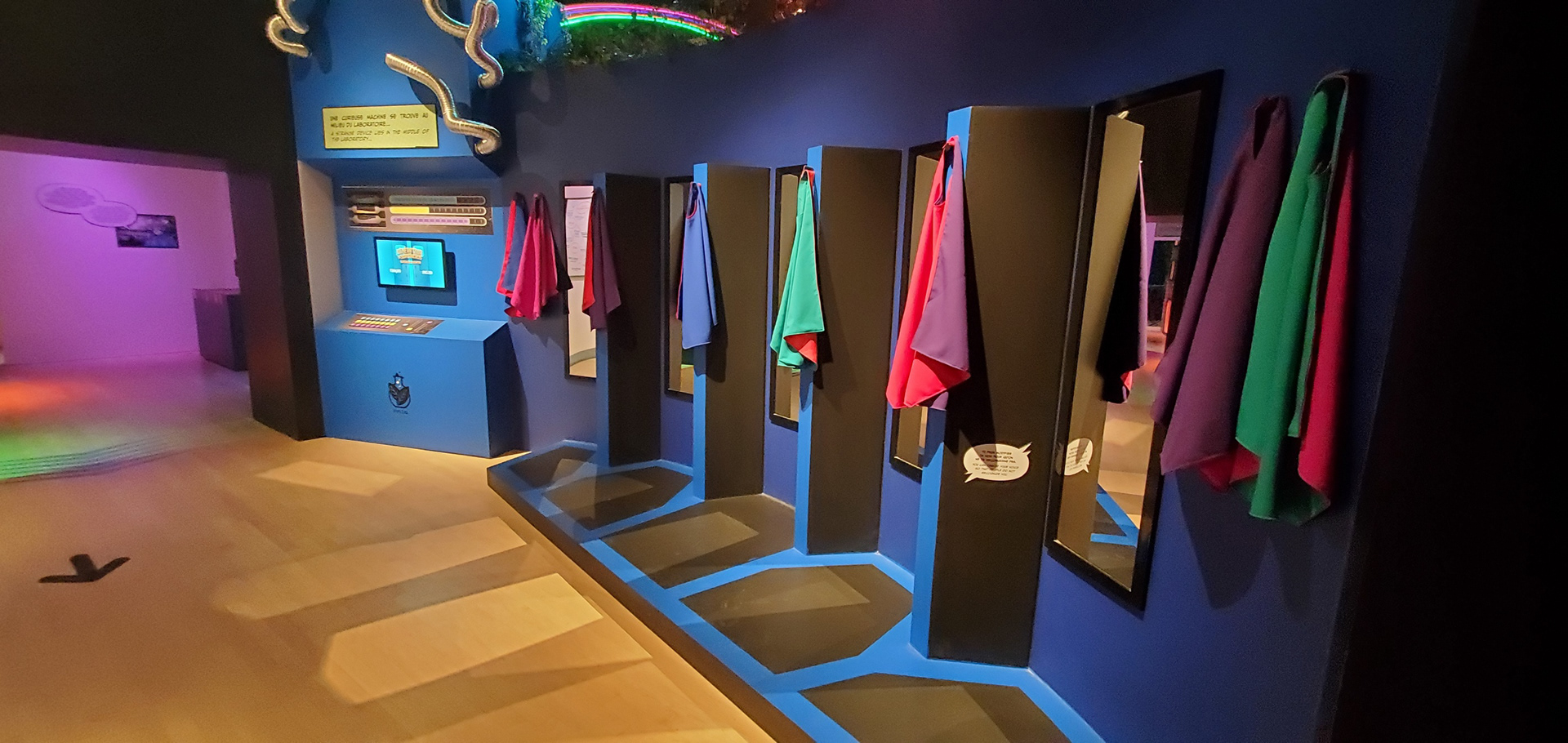 Exhibition design work for the Musée POP in Trois-Rivières. The museum aimed to launch a hands-on exhibition for children recounting the history of comic books, superheroes, and Quebec heroes. We contributed to the design of the space, conceiving all the structures, display cases, and games featured in the exhibition. We recycled materials used in other exhibitions to reduce environmental impact and costs.