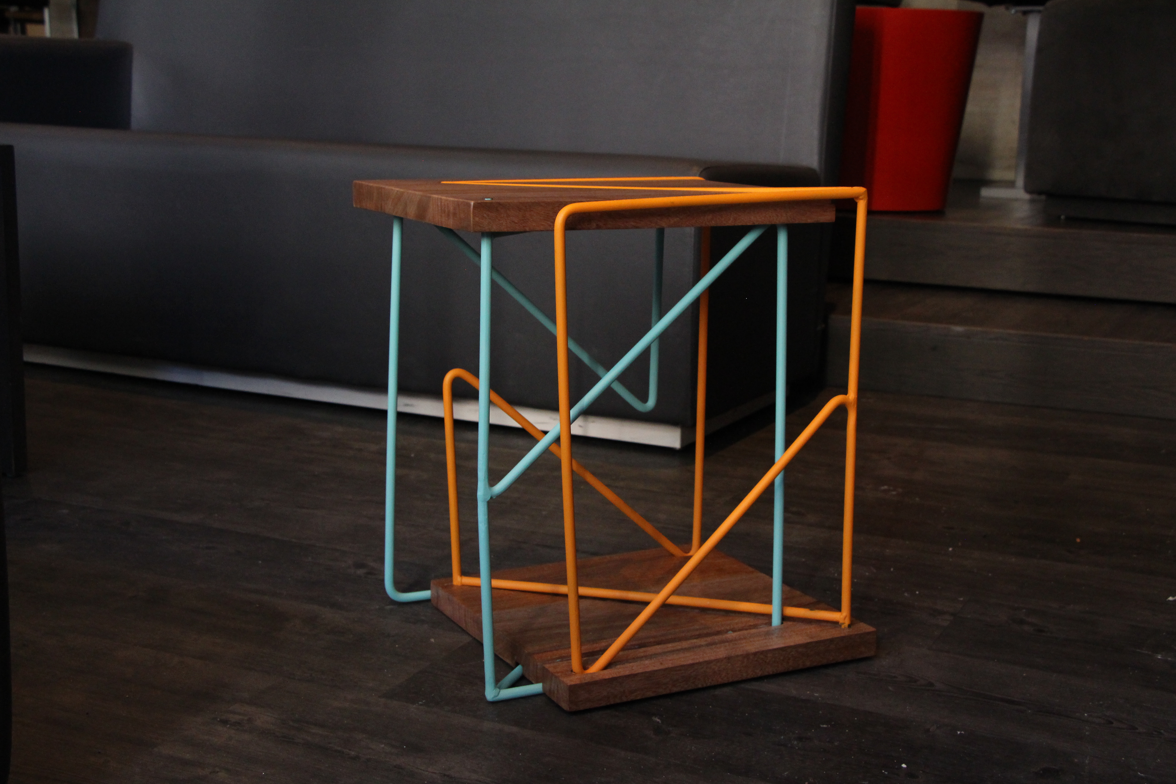 Ensemble de tabourets s’emboitant ensemble. Contraint par deux matériaux imposés, soit le bois et le métal, ces tabourets sont pensés pour être déplacé et entreposé facilement dans la pièce. L’objectif était de créer la discussion autour de l’objet ou directement assis sur celui-ci.