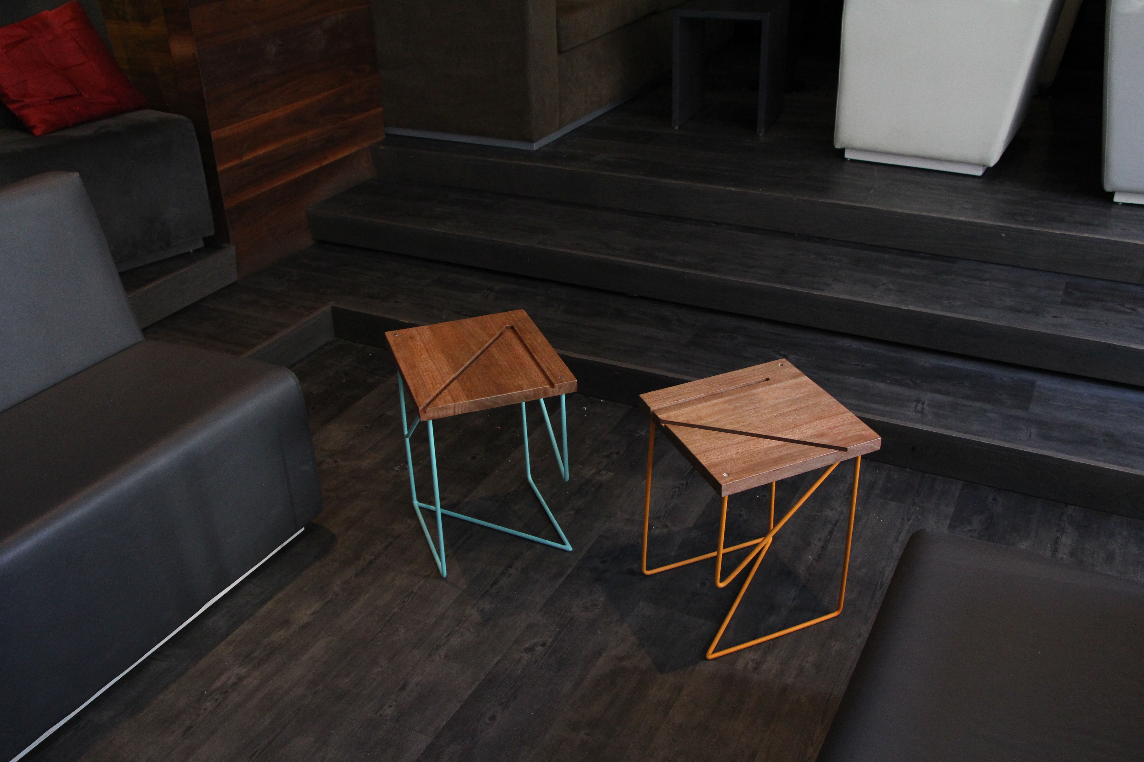 Set of stools that fit together. Constrained by two imposed materials, wood, and metal, these stools are designed to be moved and stored easily around the room. The aim was to create discussion around the object or directly seated on it.